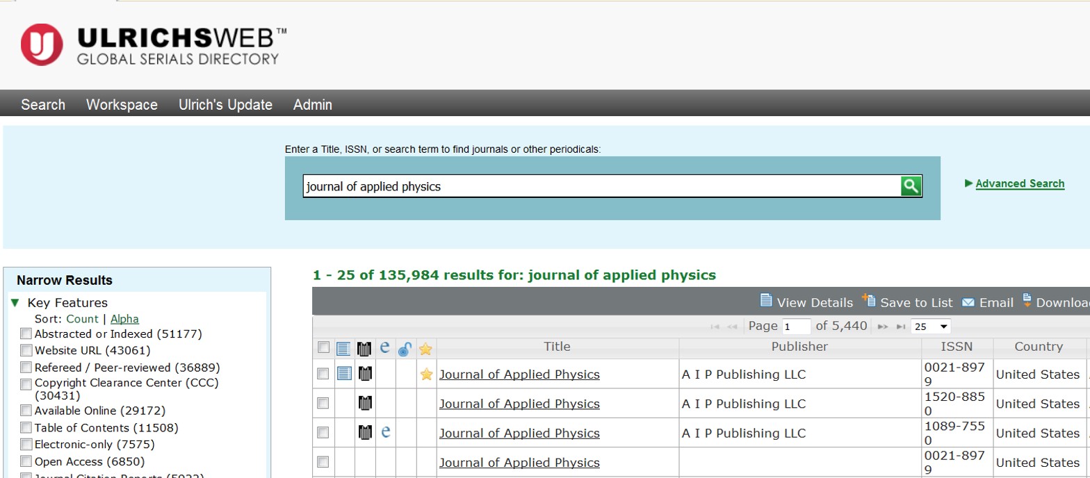 Search for journals on Ulrichweb and find out if they are peer-reviewed. The symbol